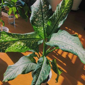 綺麗。 向こうが透けて見える。 購入した時「ディフェンバキア」としか書いてなかったのですが、この子はなんていう種類なのかな??🤔💭💭 次に全体写真を載せます🌿🌿