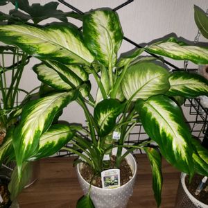 先日、食品スーパーの店先から450円で迎えてきたディフェンバキア カミーラさんが元気です。 2⃣3⃣迎えて約2ヶ月、我が家に馴染んでくれたみたいで、新芽ラッシュです。🌱😅😆😉😊 4⃣我が家は、ミドリ一色でしたが、カミーラさんが来て、同じミドリ系なのに、華やかになりました。😊😋😁