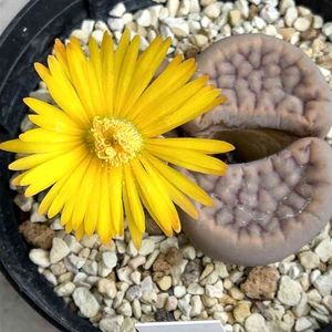 💛リトープス 招福玉💛 黄色のお花が咲きました😊 やっとお花が見れました‼️ 仕事にプライベートと充実しており、リトープスのお花がなかなか見れずにおりました💦 右側の口を開けたリトさんの中には、子リトさんが2つ育っています🥰