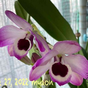 つくば 夏の洋ラン展 戦利品でございます〜🤗🤗🤗 上段 デンドロビウム フォーミディブル“宇久須” 宇久須はメリクロン変異株でフォーミディブルの中でもコンパクト。バルブの高さが20cmほどですが花は普通サイズ。 宇久須は西伊豆の地名。西伊豆と言えば、堂ヶ島洋らんセンターがあったよね〜何か関係があるのかな〜。ユーザーさんの投稿を見てご縁があったら欲しいなと思っていた品種。同じ品種の“竜馬”は“宇久須”の大きいタイプ。“金太郎”は花弁が丸っこい感じ。次は金太郎を狙おう!って同じ品種なのにねぇ〜ꉂꉂ(ᵔᗜᵔ*)笑 下段 ファレノプシス サンデリアナ(原種)ダリのヒゲみたいなヒゲと美しいピンク色にズッキューン❣️ 微香。葉に模様なし。花茎が華奢で羨ましいわ〜😙😚😗