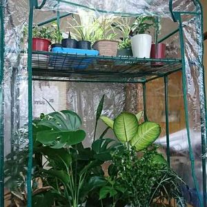 さぶい~ 最低気温が10℃切ってるこの頃…。 寒いのが苦手な子達が多いので ビニール温室買いましたよ~。 東北の寒い冬を乗り切るため! 少しでも暖かく過ごしてもらおうと買ったんだけど… 棚網の強度がやや心配( ;∀;) こんなに乗せて大丈夫だろうか…💦 安いから仕方ないのか? ちなみに¥5000でした~。 ビニールもソッコーで破けて テープで貼る始末(´Д`|||)ハァ チャックは正面のみで、奥の植物を出したいときは前のをどかさないといけないし… なんだか面倒だわ( ノД`)… 裏面にもチャックがあればいいのに!!! 春までの我慢だっ(><)! もうすでに満員ですが、入りきらなかった子達はどうしようか考え中(¨;) 寒い地方の方々は、どのようにして冬を越させているのか気になる(/。\)