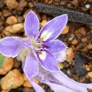 バビアナ セデルベルゲンシス 先秋に買った小球根のうちの一種類 10cmほどの高さで咲いてます💓 薄紫に白い模様❔がアクセント 可愛いわ~✨