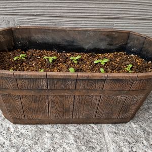 薄い紫色のトルコキキョウの苗を手に入れたのでプランターに植えました。 春が待ち遠しい! 味気ないのでプラスチックのプランターを自分でペイントしてみました。