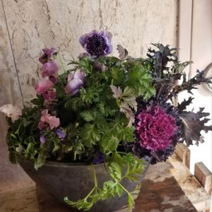 寄せ植え💜 今年度初めての寄せ植えです😊 アネモネ以外は300円かごにはいっていたものを使ったので相変わらず安上がりな寄せ植えですね😄 ビオラ、鳥に食べられませんように… しばらくはベランダには出さないでめでることにします😊 アネモネ 凛々花 ビオラ 天使の誘惑 ビオラ2種 プレミアムアンティーク葉牡丹 葉牡丹