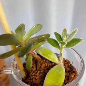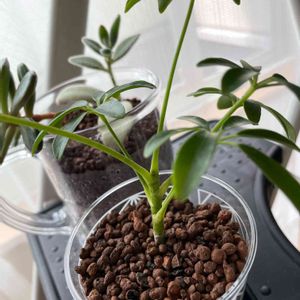 3月にお迎えした シェフレラさん 植え替えた時は根が少なく ぐらぐらだったけど 最近はしっかり根を張っているようです 鉢は100均のゼリー用カップを 使っています 後ろに雪兎耳とレズリーがいます レズリーはめっちゃ茎が伸びてきて 葉の部分が支えられていません 対処法を考え中です 雪兎耳は少しずつ葉の枚数を増やしています 多肉植物はこれからの時期外に置きたいけど、ハイドロカルチャーは鉢の中が熱くなってしまう…どうしましょうね
