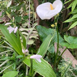 カラーも綺麗 斑入りのシランは薄いピンク 雷⚡️雨の前に☔️