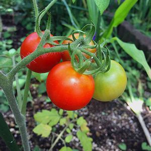 中玉トマト あたりまえだけど、手前から順番に色づいている。 茎には産毛がたくさん生えている☺️ 水分が蒸発するのを防ぐため。 空中の湿気をつかむため。 直射日光を防ぐため。 少し寒い時には防寒のため。 そして、小さい虫が這い上がりにくいようにするため。 いろんな意味があるらしい😳