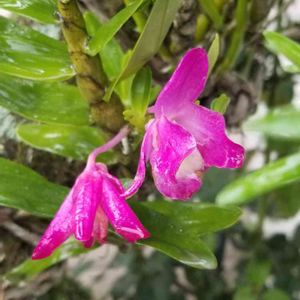 家の槇の木に着生しているラン科植物に花が咲きました。種類はわかりません。
