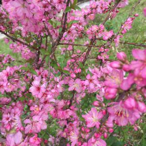 ニワウメ(庭梅) 散歩道の途中。 道路脇の法面に咲いてる。 誰が植えたんだろう?😳