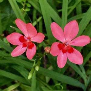 ヒメヒオウギ 毎年、こぼれ種から庭のあちこちに咲いてる。 でも、根は球根になっていて、秋植えらしい😳