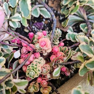 先月実家の庭に生えていて、新芽がぴょこぴょこ出てたので、ミセバヤかと思って貰ってきましたが、成長してきたら セダム属 『 タケシマキリンソウ 』 Sedum takesimense みたいです😅💦 アトランティスの班なしのノーマルちゃんと言うと分かりやすいかしら😚 実家の庭を散策するのは楽しいです💓 母は名前を知らずに育てているので、私が名前を教えてあげますが、覚えられないみたいで 何度も名前を聞いてくるので会話が増えますね😁 昨日はパセリが庭に自生してるので(笑)それを2ポット貰ってきました😆✨ 「虫に丸坊主にされたらまた取りにおいで〜👋」 と言われ┌(._.♡)┐アリガタヤー💓