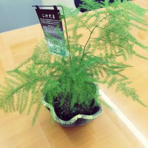 スーパーの園芸コーナーで見つけた苔玉にアスパラガス
