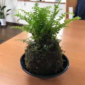 春に買った苔玉❣️ 枯れずにシダを守ってくれてます 苔玉をつかむかのように根?が出て来てますが苔玉変えなアカンのでしょうか?どーしょー🤔