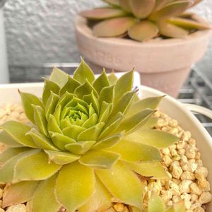 センペルビウム 🪴バーンスティン 春先は薄めのカーキ色に 真夏はこの可愛い色になってる💘