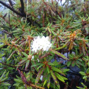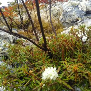 ☆イソツツジ☆ 恐山の厳しい環境に咲く。 葉がかなり傷んでいるがシャクナゲ?だろうか。葉が小さいが裏に反り返っていた。 🔍イソツツジ。 9/9