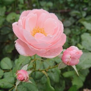 雨☔止みました~🎵 ナエマ🌹やっと咲きだしました~💓 ちょっと隣にサハラに押され気味で😅 来年は剪定考えなおしです😂
