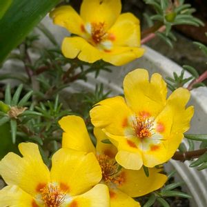 ①② マツバボタン💛🩷 この2色はこぼれ種からあちこ ちに生えます ③ピーマン ④キュウリ 家庭菜園です ⑤コモリグモ ミニ花壇に春種蒔きした物を植 え付けようと掘ると出て来まし た 卵嚢を腹部に付けている母グモ です🕷️ コグモになっても,しばらくは 腹背に乗せて移動するそうな!