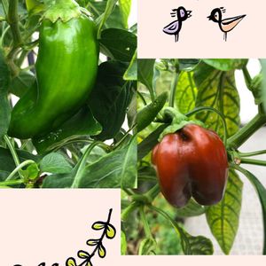 こんにちは♪ 今日から秋のお彼岸入り🍂 早々実家の方のお墓参りに行って来ました。 ②、百日紅の花がまだ咲いていました🌸 ①、我が家の家庭菜園のピーマン🫑。 大きい深さがある鉢で栽培です。最近ピーマンの実が赤いのがあって調べたらリコピンが多く含まれて赤くなり食べられると記載がありました。甘いらしいです。このまま実をついたままだと痛んでしまうので✂️収穫しました。通常は緑色したピーマン🫑です。