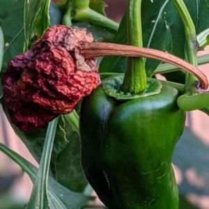 ピーマンまだ収穫できます🫑今年は病害虫の被害が出たのでだいぶ弱っています。寒いしそろそろおしまいかな〜🥲