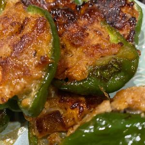 収穫したピーマンは肉詰めに🫑 少し焦げたけどうまい!