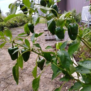 ピーマン実りました ピーマンの種を、ばらまいていたら 見事に実りました。 もう少し大きくなたら 収穫して食べようかなあ?
