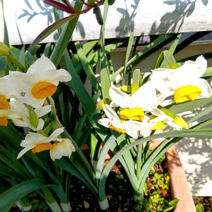 おはようございます😃 今日も皆さまにhappy〜💕 職場のフサザキスイセン💛🤍 我が家の八重咲きスイセン🤍💛 どちらも元気に咲いてます♬