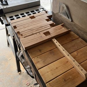 ⁇の制作 その③ こ〜んば〜んわ〜‼️😃←錦鯉風に言ったつもり😂 1日経つのが早いこと!😳 もう今日の投稿か⁈ 💦 材料の加工が終了し(1枚目)、組み上げ作業です(2〜5枚目)。もう何を作っているか、お察しがついたかと思います😃 先日知り合いの木工業者さんと一緒に仕事をする機会があり、これらの写真を見せたところ、「大工さん、今時ホゾ加工なんて木工屋でもやりませんよ」との事。ダボ継ぎの方が手間がかからず、主流なんだとか! 早く教えてくれよ!😂