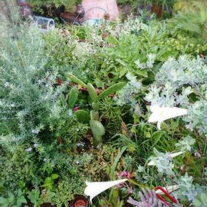 ジャンクなバケツを貰ったので七福神丼を夢見て七福神を植えました。まだまだショボいけど大きく育つとイィなぁ💕