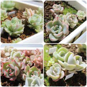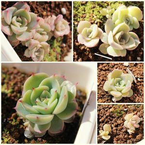 【毎月3日は実生の日】 こんばんは🌟 娘の自由登園2日目、今日もエンジョイして来たようです🎶 船橋市もついにコロナ感染者が出たとの事でさらに利用者が減りましたが、うちはまだまだギリギリまで利用しますよぉ❗️ さあ実生の日、次からはお待ちかね(❓)のエケベリアチーム❣️ 全部で4枚ありますが、お付き合い下さい💦 ・ピンクザラゴーサ×ヘラクレス ピンザラとヘラクレスのピンクが混ざり合って可愛くなって来ました💕 冬の前くらいが一番ピンクで可愛かったです( ⸝⸝⸝⁼̴́◡︎⁼̴̀⸝⸝⸝) ・リラシナ×ヘラクレス リラシナが強そうですが、ほんのりムッチリ、ヘラクレスな雰囲気です🎶 pic下段の右上もリラシナ×ヘラクレス☝️ ちょっと離れたところで生長中⤴️ ・沙羅姫×チワワエンシス 葉っぱ2枚だけ残ったところから奇跡の復活❗️ その隣は銀天女×沙羅姫💡 同じく葉っぱ2枚から復活中(>艸<。)