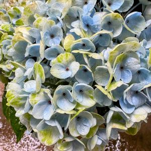 アジサイ マジカルレボリューション 一部押花にして午前中 押花教室のある公民館で市の公民館講座で使いました 見本も多めに作り 準備が大変で 無事終わり 皆さん帰りに楽しかったね〜って言いながら帰られてよかったです 3枚目 昨夜の雨でカサブランカが倒れてしまいカットして玄関に置きました