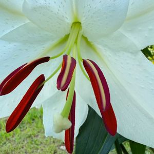 カサブランカ オシベの花粉が車に当たってしまうので早目に取り除かないと ちびちび姫も 車庫の狭い所を通り服に着いたら取れないと言うのにわざと通ります😅 今日は午後は雨になりそうです 朝のうちに美容院の予約してるので行って来ます