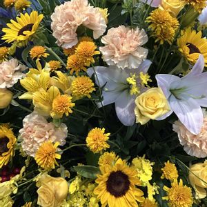 おはようございます 先日の寺コンサート会場 飾られていたお花です 玄関前にボランティアの方のお庭で咲いている お花達が飾られていました