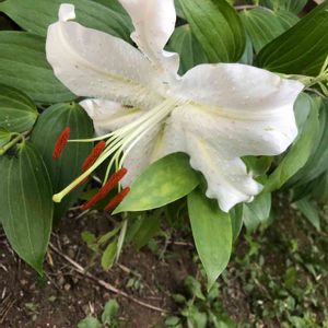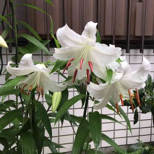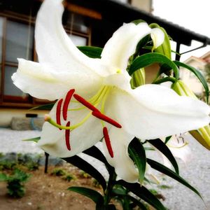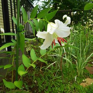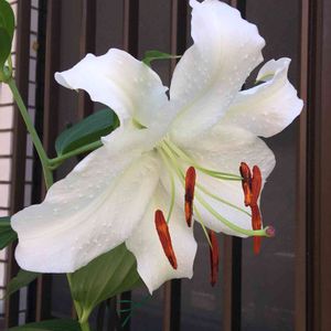 ユリ(カサブランカ) 昨年、お友達から球根を頂きました。 今朝、咲きました🙆 いい香りで〜す🙌