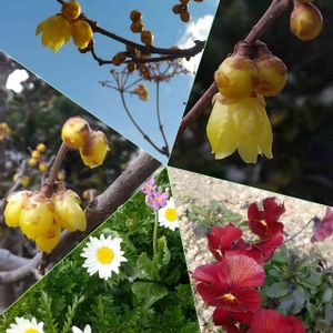 2/7 (月) 🌤 🌳💛蝋梅💛🌳 学名❀✿Chimonanthus praecox ※ロウバイ科 ※ロウバイ属 英名❀✿Winter sweet 別名❀✿唐梅(カラウメ) 南京梅(ナンキンウメ) 原産地🔷中国 開花期🔷12~2月 花の色🔷黄 ♣️蝋梅(ロウバイ)の名前の由来は様々で、中国名「蝋梅(ラーメイ)」を日本語読みしたもの、花の色や光沢が蜜蝋(みつろう)を連想させるから、臘月(陰暦の 12 月)に 花が咲くからなどがある。英名では”Winter sweet”と呼ばれ、寒い冬に甘い香りを放つ蝋梅(ロウバイ)に合っている。 ♣️ 🌼🌿ノースポール🌿🌼 ❤️💚ビオラ💚❤️ 蝋梅が咲き始めました💛🌳 庭木🌳花壇🌼❣️〜📸📱2/6付