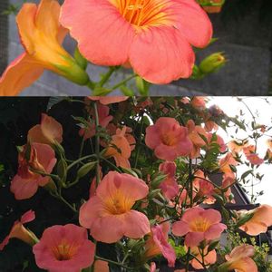 ノウゼンカズラ 近所の家の塀を覆うように多くの花が咲いてました。