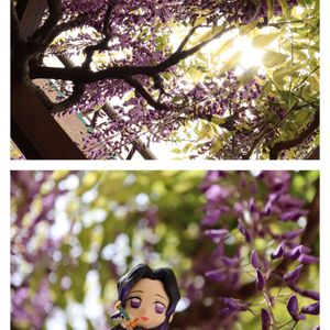 おはようございます 藤の花 胡蝶しのぶちゃん🦋 ちょっと加工してみた😁ので 再投稿失礼します 写真加工やってみたい でもスマホだと小さくてやりにくい… iPadを買おうか迷い中😅