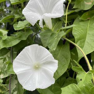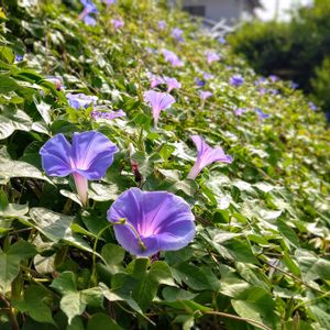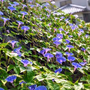 おはようございま〜す♪😊 •8月23日(土) •杜の都仙台から ☘️朝顔の後ろ姿💙🤭 グリーンカーテン作りの為に••• 5月下旬、ポットに種蒔き、6月下旬定植約20株程でしたが順調に蔓を伸ばし成長していたのですが...何故か蕾が落ち始めて下部1m位は咲かず...上部の葉っぱはシワシワ!☘️😥 試しに「リキダス」を週1で、3週与えてみました••• 結果、咲き出しましたぁー!!!👀 毎朝30輪は咲いてますよー🤍💜💙☺️😍 リキダス凄い(*゚0゚)👍 📖花言葉 「愛情•結束」 📷:2025.8.20 残暑どころか真夏の 暑さが続きますね🥵💦 皆様ご自愛ください