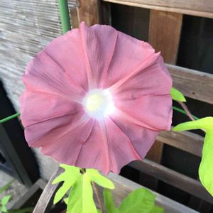 ブロ友より頂いた種より開花 団十郎朝顔 正統派継承種と思われます 団十郎茶と言われる色 江戸時代より伝わっている種 花が柔らかく、少しの風でも痛むので玄関前で育てています。