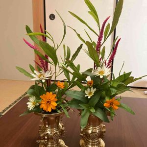 仏様にも吾亦紅 そしてジニアかろうじて残っていた小菊です。変わり映えしなくてごめんなさい🙏🙏