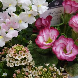 プリムラマラコイデス 『メローシャワー』 ➕ ローダンセマム 『アフリカンアイズ』 ➕ ネメシア を使用して ホワイトカラーの寄せ植えを作りました。