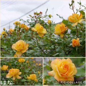 こんにちは🍀 なかなか暖かくなりませんね。 雨が止んだので写真を撮って来ました。 ツル薔薇のサハラです。 黄色からオレンジにピンクにと、色が混じりながら変わって行きます。 3代目サハラさん。 挿し木から育ちました🤗