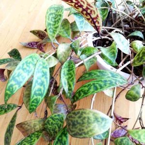 エスキナンサス・マルモラタス 去年だったかな? この葉の模様が好みで💕 運良く値下げされててget! 今年になって花が咲きました✨ でも葉とは違ってとても地味で緑色の花なので気づかず😅