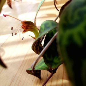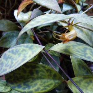 2020.12.1 エスキナンサス マルモラタス マルメラータ Aeschynanthus marmoratus エキゾチックな葉っぱに🌿🌿🌿 ローリング・ストーンのマークの様な 💋(≧👅≦)🟡 面白い☺ 蕾から咲き始め 観察して今朝撮れました ラディカンスは💄💕これは💋 K.Kさんがわけてくれたから育てて観察出来ましたヽ(*´∀`)人(´∀`*)ノ この後さやができますよ!楽しみ٩( ˊᵕˋ * )و 今年もあと1ヶ月 12月もよろしくお願い致します! ※ マルモラタスとは『大理石模様』と言う意味だそうです 👨🏻🏫引用 直射日光を避けた明るいところで育てます。 鉢土が乾いたらたっぷり水を与えます。 寒さに弱く最低温度10℃以上必要です。 花は不定期で咲きます。 花つきを良くするには光が強いほうが良いですが、葉の美しさを観賞するタイプなので夏は特に遮光することをお勧めします。