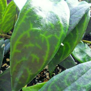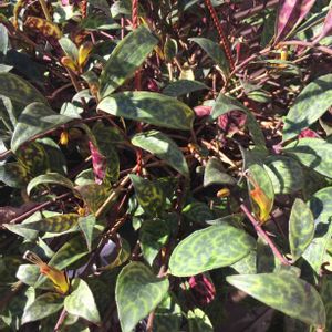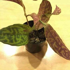 ウチにある唯一のエスキナンサス。 エスキナンサスは花も綺麗ですがこれはあまり綺麗ではありません。どちらか言えば葉の模様が特徴で小種名のマルモラタスは英語ではマーブル(大理石)の意味。 葉は分厚くエメラルドグリーンが映えます。