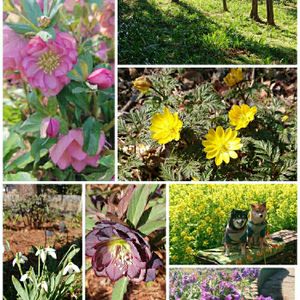 茨城県フラワーパーク もう少しお付き合い下さいね_(._.)_ 園内には福寿草やクリスマスローズ、菜の花が花盛りです 日陰の斜面一面に 春になると白または薄青色のシャガの花が咲くそうです 見てみたいわ☺️ 菜の花の所ではワンちゃんの撮影会🐶🐶 なかなか ママカメラマンの方を向いてくれず 大変そうでした😅