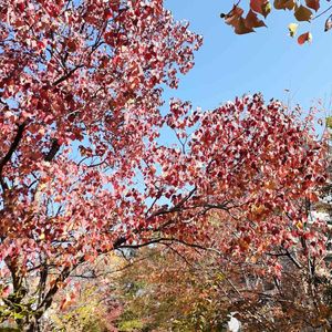 ナンキンハゼ ウォーキングでまた出会いました😍 先日は実をメインにしたので 今日は紅葉の美しさを…🥰 千駄ヶ谷駅前にて。