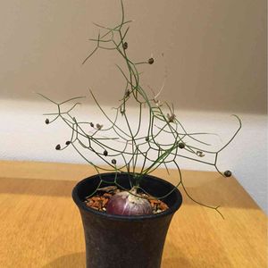 ずいぶんもじゃもじゃしてきました。 可愛い紫のタマネギ型の球根に線香花火のような枝。そして丸い種。