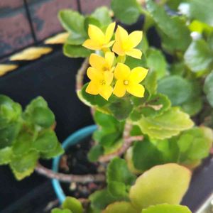 おはようございます☔️→☁️→☀️猫の目👀天気の朝⁉️駐車場19度😄カランコエ(黄)咲きました✨