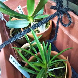 一度も咲かせてない「フウラン」毎年春に苔交換してます、立派になってきました、そろそろ💠花咲かせて🙇奥「ナゴラン」はここ二年咲いてくれます、三年目も大丈夫ですね😃