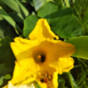 おはようございます、熊蜂(?)かぼちゃの花に❗️先客熊蜂🐝後から来た熊蜂は慌てて(花で滑りビックリ)別の花に行きました。